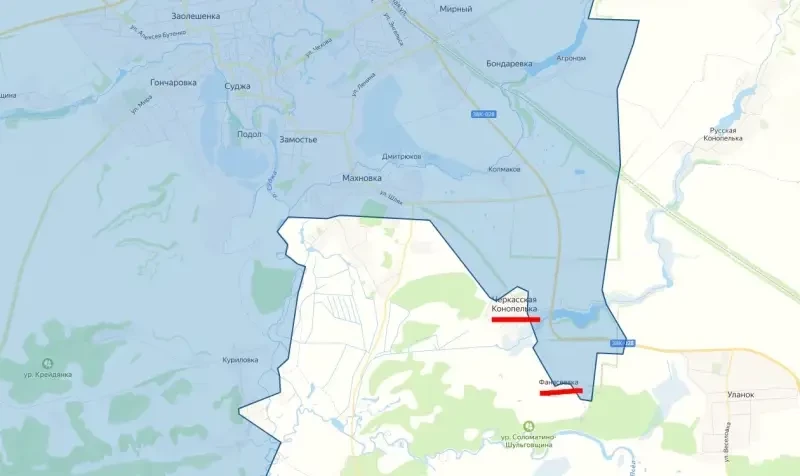 По ситуации в районе Черкасской Конопельки и Фанасеевки военное ведомство информации не дает, лишь сообщает о трех контратаках ВСУ. По данным ТГ-канала «Северный ветер», бои идут в лесополосах в окрестностях этих двух сел, противник несет очень большие потери. По данным от других ресурсов, пока ничего еще не решено, враг продолжает попытки закрепиться на местности и продолжить наступление, идут ожесточенные бои.