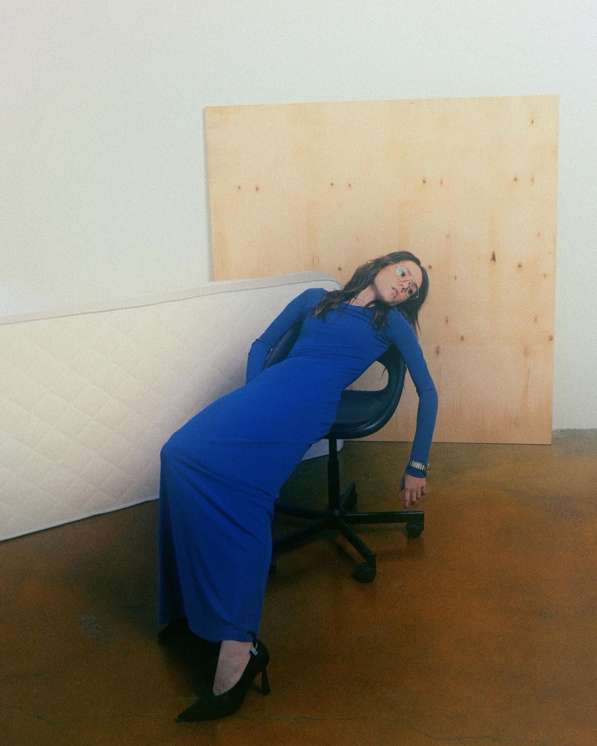 В одном из нарядов актриса сочетала бирюзовые колготки с тренчем цвета охры и лиловыми босоножками, создавая эффектный образ, напоминающий выход Бьянки Цензори.