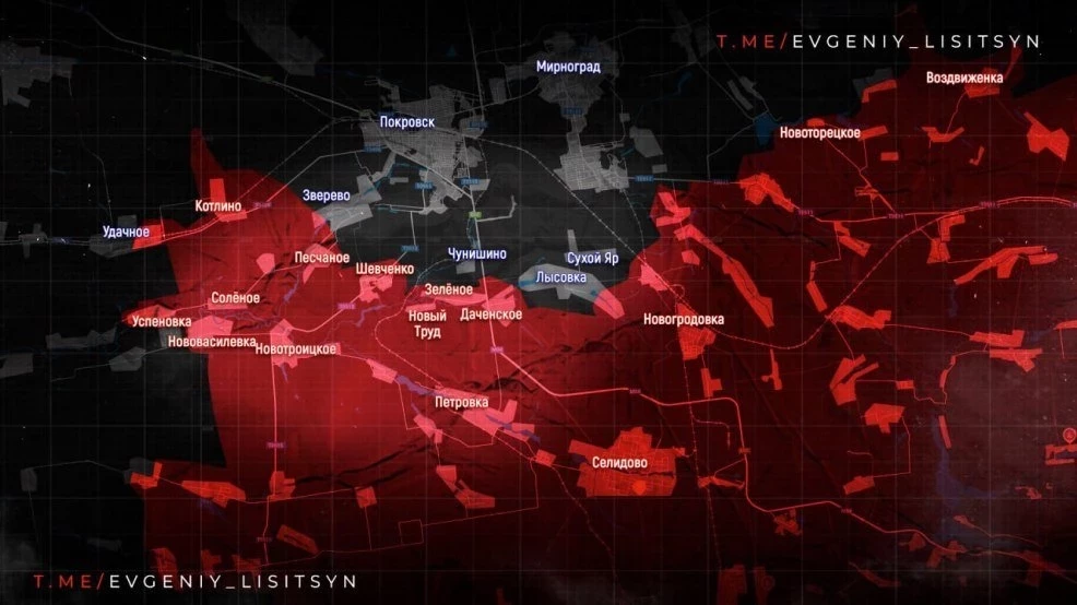 На Красноармейском направлении ВС РФ приступили к штурму железнодорожной станции Удачное юго-западнее Красноармейска. Бои идут в центре поселка.