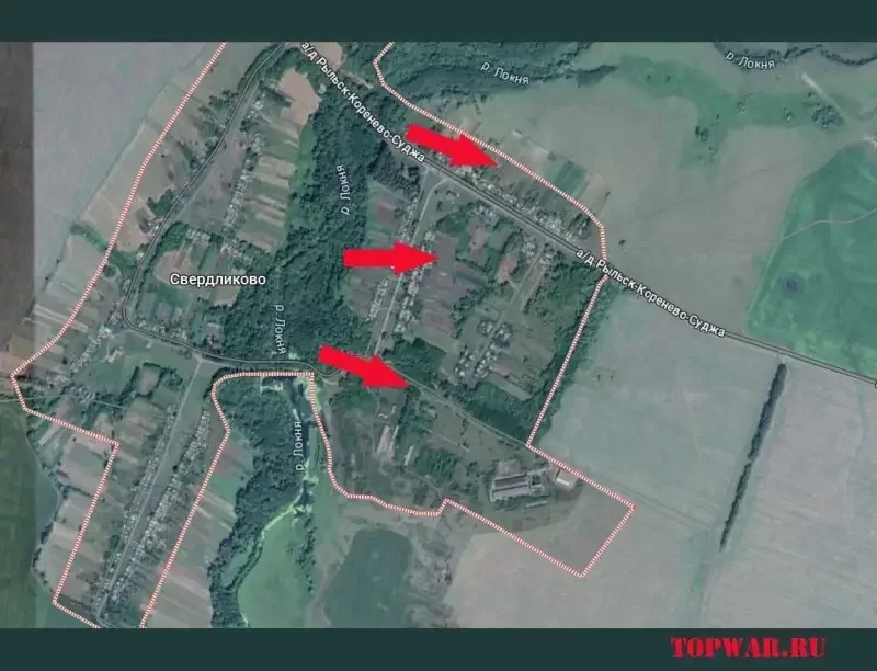 К настоящему моменту поступает информация о том, что после форсирования реки Локня более трёх четвертей площади села Свердликово перешло под контроль российской армии, сообщает "Военное обозрение".