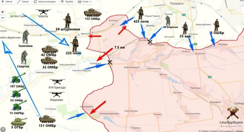 Новая карта боевых действий в зоне СВО по данным на 13.02.2025. Актуальная информация