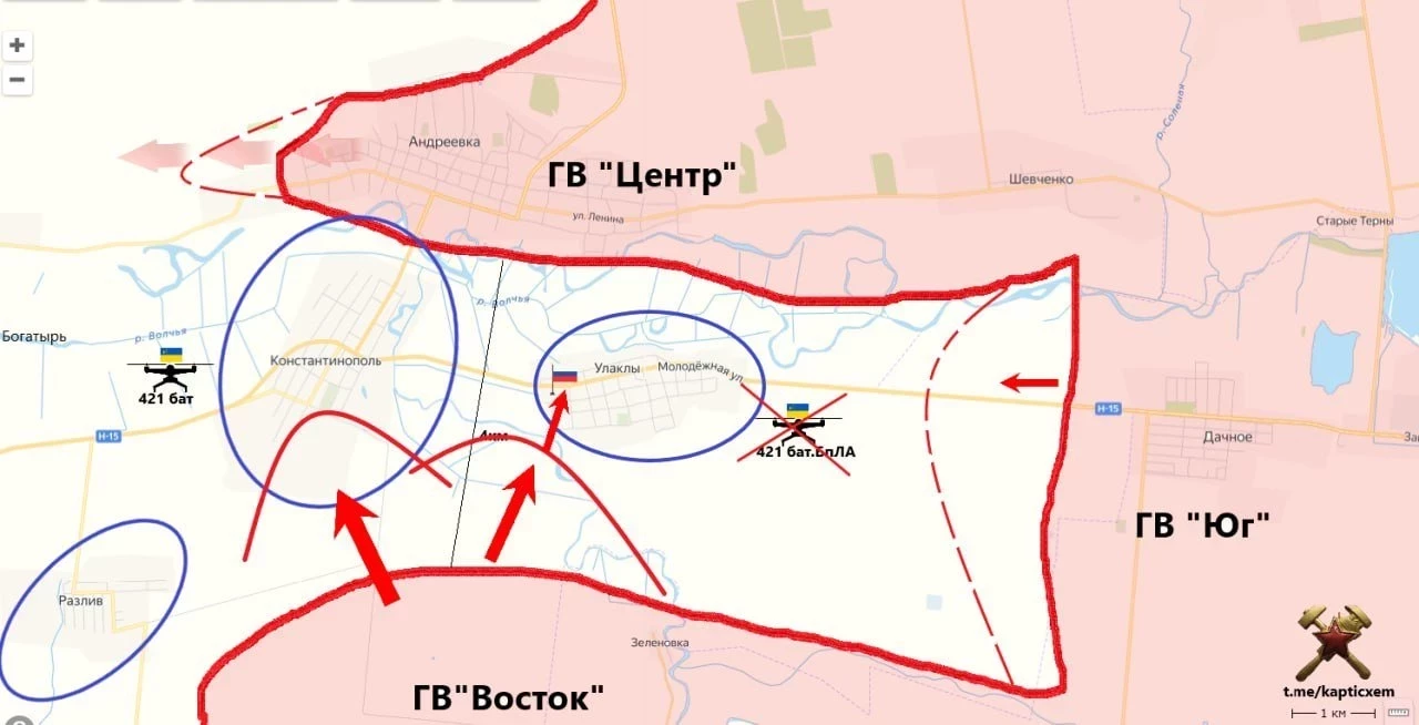 На Константинопольском направлении после освобождения Андреевки наши бойцы приступили к боям в Улаклы и Константинополе, а также вплотную подошли к селу Богатырь, сообщает у себя в Telegram-канале военкор Евгений Лисицын.