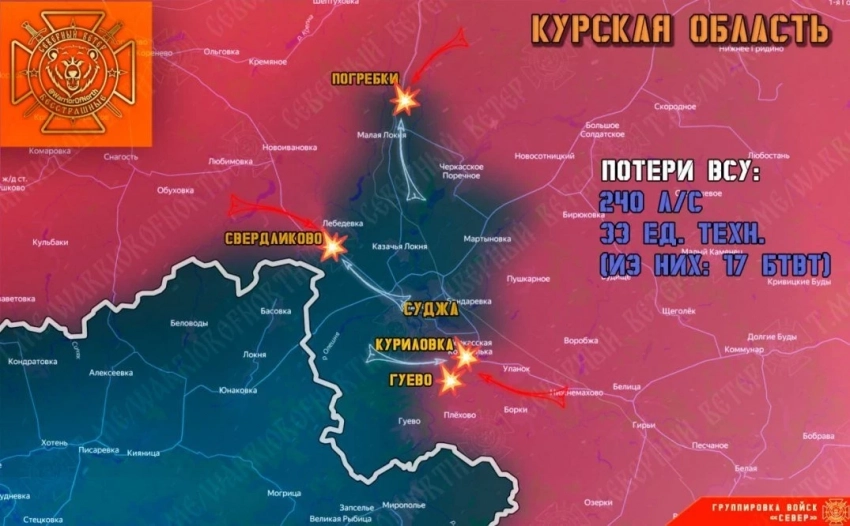 В свою очередь Telegram-канал "Северный ветер" информирует о том, что подразделения ВДВ группировки войск "Север", закрепившись в Свердликово, смогли выбить врага из нескольких опорных пунктов в лесополосах восточнее села и продвинулись в направлении Суджи.
