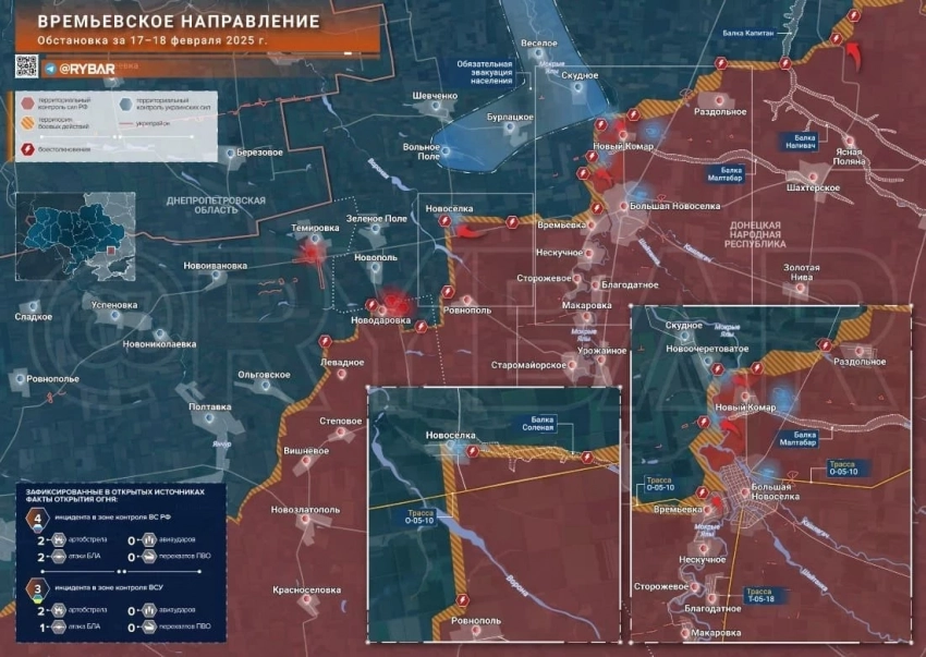 Времевка и Великая Новоселка на времевском направлении, пролегающем на стыке Запорожской области и ДНР, были освобождены армией России в январе.
