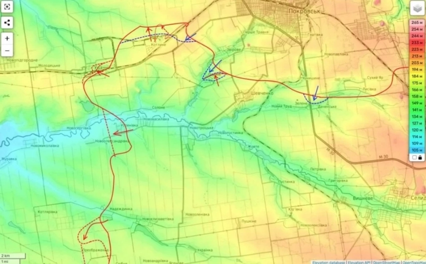 Согласно его данным, на сегодняшний день российские штурмовые группы уже форсировали реку Мокрые Ялы и укрепляются на её левом берегу. Однако, положение наших сил осложняется контролем противника как над Новоочереватым, так и над ключевыми высотами, что создает трудности для штурма.