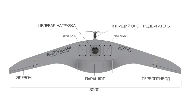 В центральной части планера имеется место для размещения полезной нагрузки. Прежде всего, «Суперкамы» несут оптико-электронные станции разных типов с дневными и ночными каналами. Оператор в режиме реального времени получает видеосигнал и может вести разведку или выполнять другие задачи. Кроме того, в новом проекте появилась функция автоматизированной обработки данных. Готовая информация передается в систему управления войсками тактического звена.