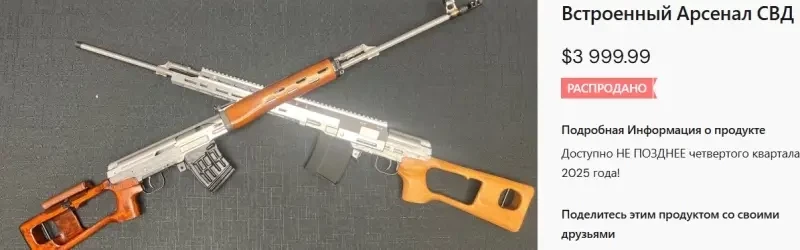 На разработку аналога советской снайперской винтовки у американских оружейников ушло семь лет. Между тем, в Insite Armory полны оптимизма и сообщают, что сделают все возможное, «чтобы историческое оружие было доступно как можно большему количеству покупателей». Судя по сайту американской компании, даже с такими характеристиками все уже произведенные ею СВД распроданы, портфель заказов закрыт до четвертого квартала 2025 года.
