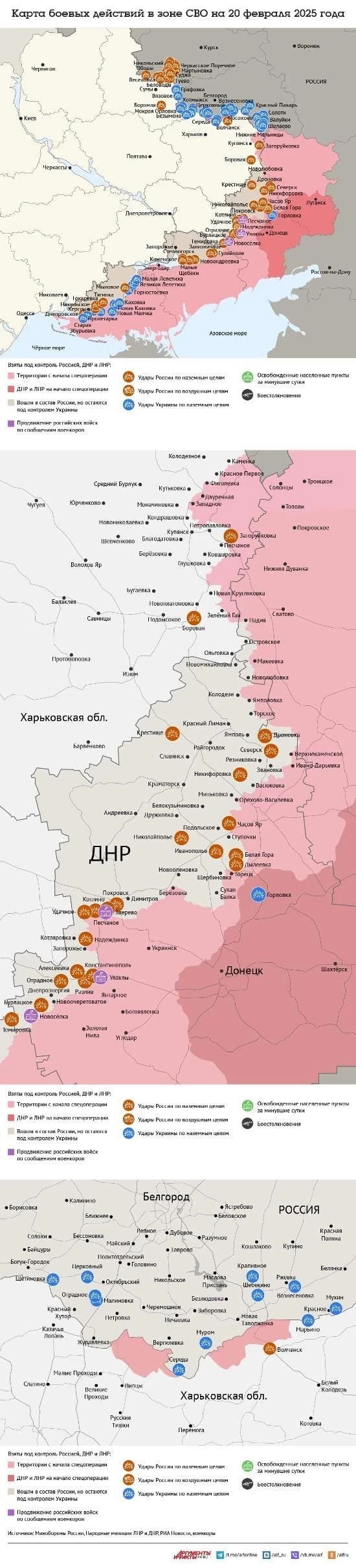 Карта СВО на Украине по данным на сегодняшний день, 20.02.2025