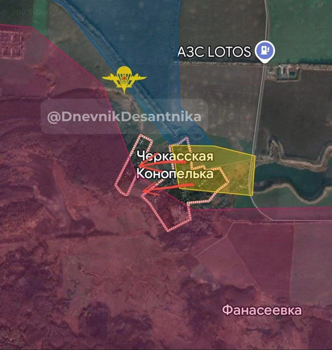 В свою очередь Telegram-канал "Дневник Десантника" информирует о том, что российские десантники продавливают оборону противника и продвигаются на западной окраине Черкасской Конопельки.