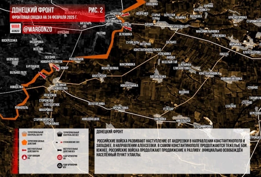 На Константинопольском направлении официально заявлено об освобождении н.п. Улаклы. ВС России развивает успех через Андреевку на Константинополь.