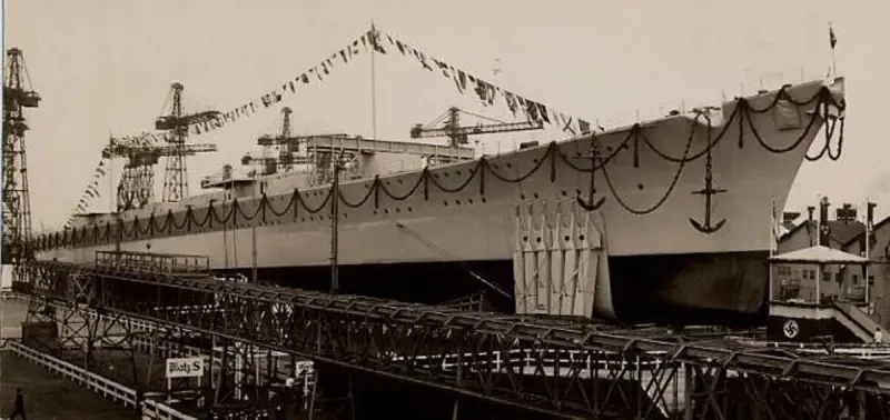 Пятый и последний крейсер данного проекта заложили на верфи фирмы DeSchiMAG в Бремене 2 августа 1937 года. Корабль был спущен на воду 1 июля 1939 года и получил имя «Лютцов» — в честь немецкого генерала-партизана времён Наполеоновских войн барона Адольфа фон Лютцова. Правда, вскоре после спуска на воду достройка корабля замедлилась: кораблестроительная промышленность Рейха не справлялась с форсированным строительством Кригсмарине.