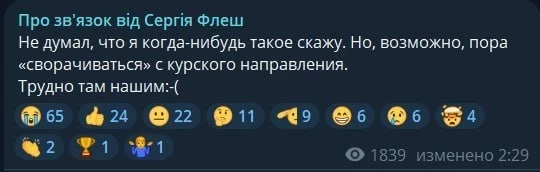 В то же время один из украинских военнослужащих публично призвал командование ВСУ к отступлению из региона из-за тяжёлого положения их группировки. По имеющимся данным, до полного окружения подразделений ВСУ в Суджанском районе остаётся менее 12 километров.