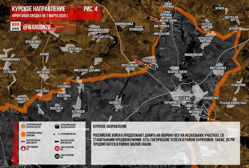 Свежая карта боевых действий в Курской области от 7 марта 2025 года: обзор ситуации в приграничье