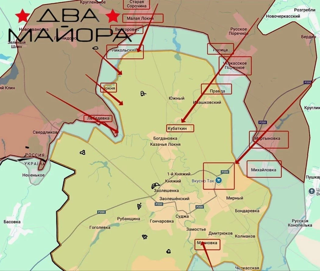 Также с мест сообщают о том, что взят под контроль посёлок Локня южнее, наши части зашли в Богдановку рядом с Казачьей Локней. ВСУ массово отходят и даже бегут с территории севернее Малой Локни и вплоть до Казачьей Локни, куда стекаются остатки северного гарнизона ВСУ, однако сейчас этот село отрезано от Суджи подорванными мостами через реку Локня, так что долго удерживать его будет для ВСУ проблематично, информирует Олег Царёв в своём Telegram-канале.