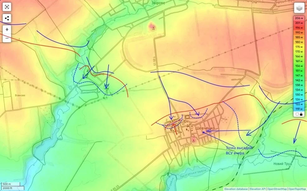 На самом деле как раз наоборот. По большей части в Шевченко мы и атакуем и контролируем. А такими вот вылазками противник пытается не дать нам зачистить северную часть села.