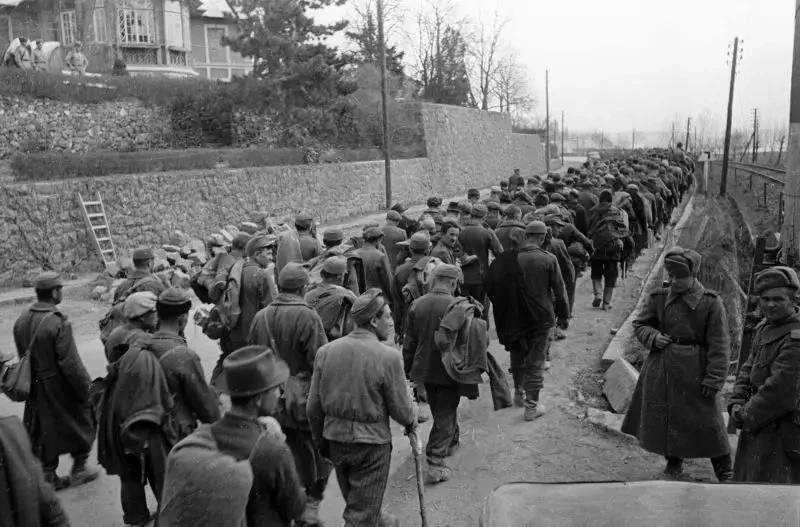 Венгерские солдаты, пленённые частями РККА в районе озера Балатон. Март 1945 г.