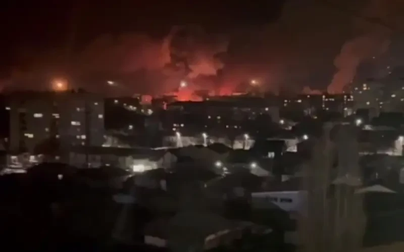 В сети опубликованы кадры, на которых запечатлен момент успешных ударов беспилотниками семейства «Герань» по объектам в городе Кировоград (украинское название Кропивницкий).