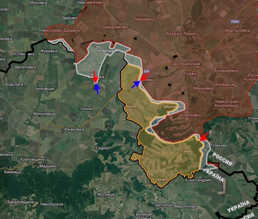 Основные бои идут вблизи границы с Сумской областью в окрестностях сел Горналь и Олешня. Оснвоной узел обороны бандеровцев - МАПП "Суджа", где украинские боевики теряют личный состав и технику под ударами наших FPV-дронов, артиллерии и танков. Продолжаются столкновения в Басовке вдоль реки Локни, где ВСУ пытаются удержаться.
