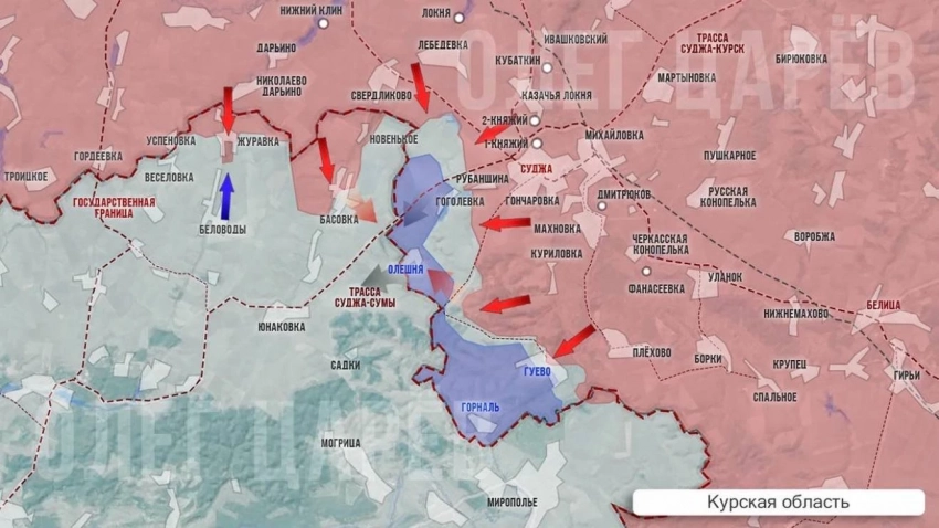 В приграничье Курской области российские войска продолжают штурмовать Гоголевку и зачищают территории к северу от Гуево, выбивая оставшиеся группы украинских военных из лесных участков.