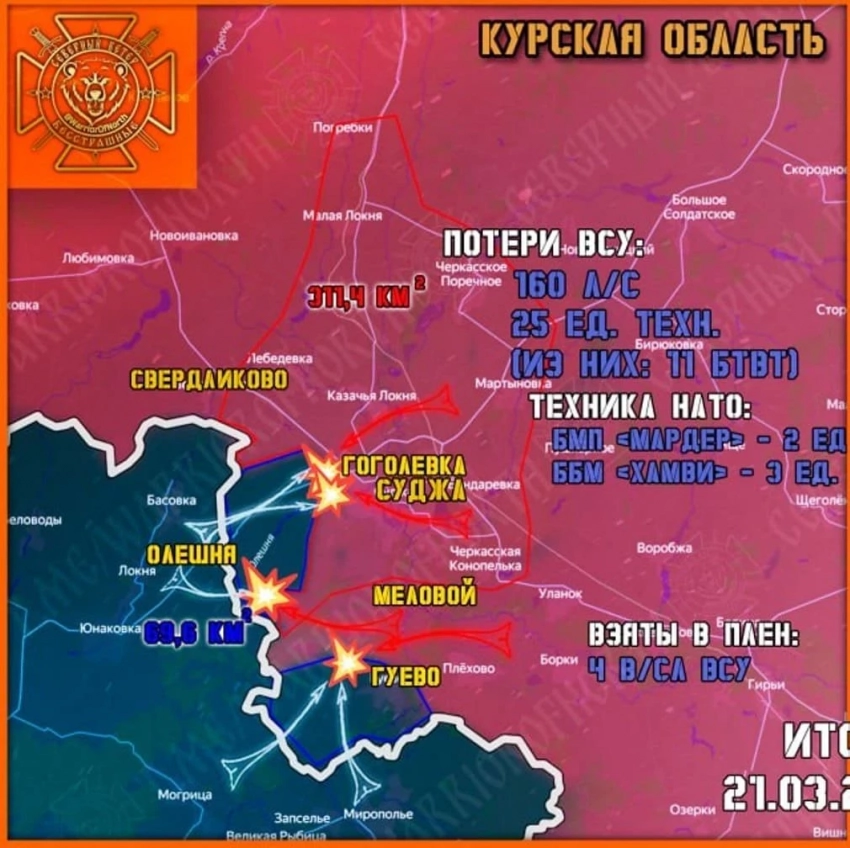 Главные новости » Эксклюзив » В Курской области продолжаются ожесточённые бои при штурме Гоголевки: свежие данные на 22.03.2025