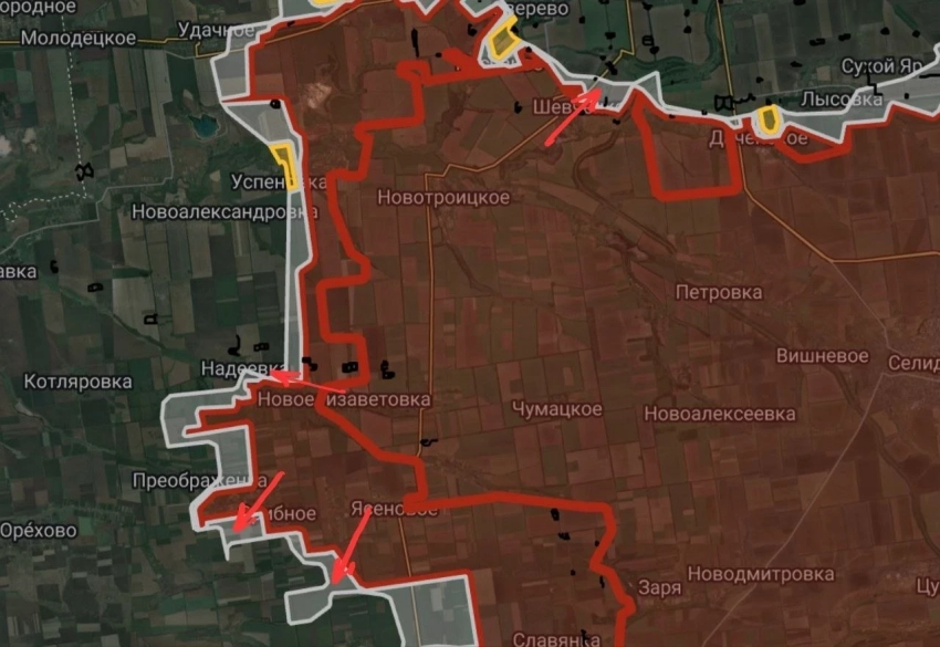Российские войска имеют тактические успехи западнее Новолюбовки и в районе Ямполовки.