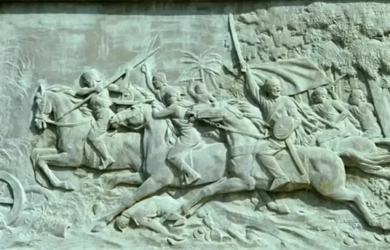 Ахмед Грань в атаке, барельеф с памятника данному персонажу в Сомали