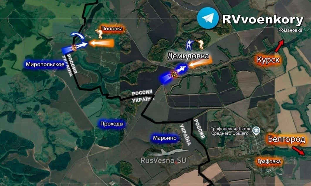 Демидовка и Поповка превратились в "серую" зону: свежая карта боевых действий в Белгородской области на 27.03.2025