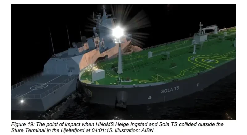 В ночь с 7 на 8 ноября 2018 фрегат норвежских ВМФ Helge Ingstad столкнулся с танкером Sola TS. Танкер, как часто случается при столкновениях между военными кораблями и торговыми судами, получил лишь незначительные повреждения, в то время как фрегат примерно через 10 минут после столкновения оказался на мелководье, где и лег на грунт.