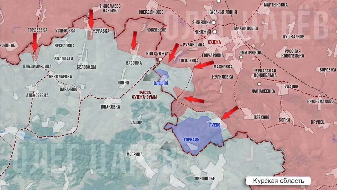 В свою очередь Telegram-канал "Северный ветер" информирует о том, что на Сумском направлении Северяне продолжают освобождение Гуево и Басовки. В ближайшее время стоит ожидать начало боев за хутор Олешня.