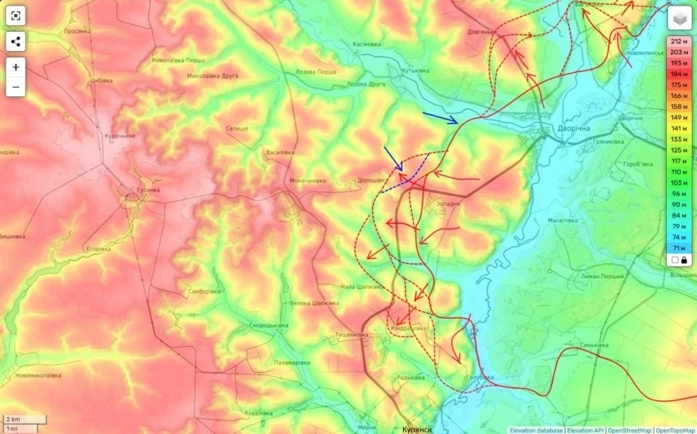На Купянском направлении наши части кроме того, что пытаются дозачистить от присутствия противника остаток западного берега реки Оскол севернее Купянска (что им успешно удается), продолжают пробиваться к трассе Купянск - большой Бурлук.
