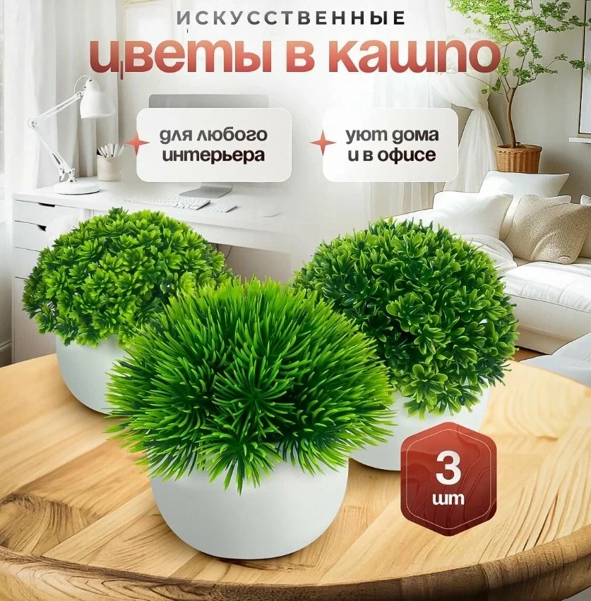 Искусственные цветы в горшочке – это стильное и практичное решение для украшения интерьера. Комплект из трех миниатюрных растений в кашпо добавит свежести в любое пространство, будь то дом, офис или гостиница. Они не требуют ухода, не вянут и сохраняют аккуратный внешний вид долгие годы. Размер каждого цветка – 12×12 см, а компактные горшочки (9×6 см) позволяют удобно разместить их на полках, подоконниках или столах. Высококачественный пластик делает листья реалистичными, а разнообразие форм в наборе позволяет создать интересные композиции. Эти декоративные растения гармонично впишутся в любой интерьер, создавая уютную атмосферу без лишних хлопот.