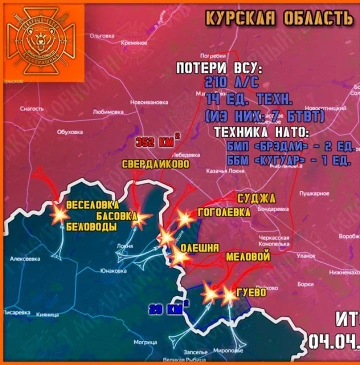 Главные новости » Эксклюзив » В Курской области идут ожесточённые бои в районе Гуево и Олешни: свежие данные на 05.04.2025