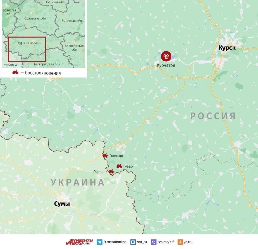 В Курском приграничье бои идут на двух оставшихся участках у границы, в районах Олешни и Гуево. У Олешни наши продвигаются в тяжёлыми боями. В районе Гуево ожесточённые бои идут южнее села вдоль дороги к хутору Горналь и Горнальскому Свято-Николаевскому монастырю.