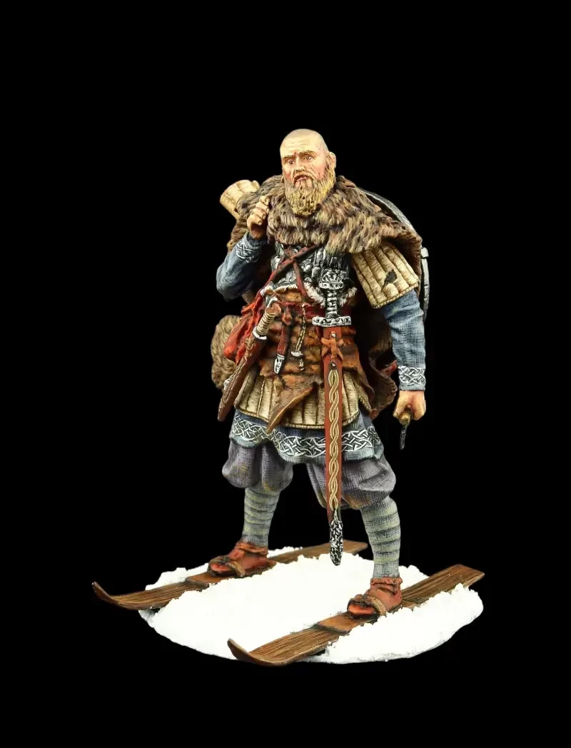 Лыжник-скандинав. Как это было подтверждено археологическими находками, викинги-варяги были не только мореходами, но и хорошими лыжниками! Лыжи у них были короче современных, но несколько шире и закреплялись на ногах кожаными ремешками. Вне всякого сомнения, в условиях снежных русских зим пришлые варяги часто пользовались такими лыжами. Производители: Silver Dream Studio и Mercury Models