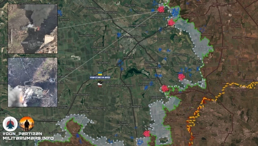 С Краснолиманского направления поступают хорошие новости. МО РФ подтвердило освобождение Катериновки. Есть тактические успехи в районе Нового. Сообщают, что ВС РФ продвинулись до200 м на север к Новомихайловке и до 300 м в сторону Зелёной Долины. Также идут бои близ окраин Колодези. К югу от Ямполовки наши части продвинулись на 300 м.