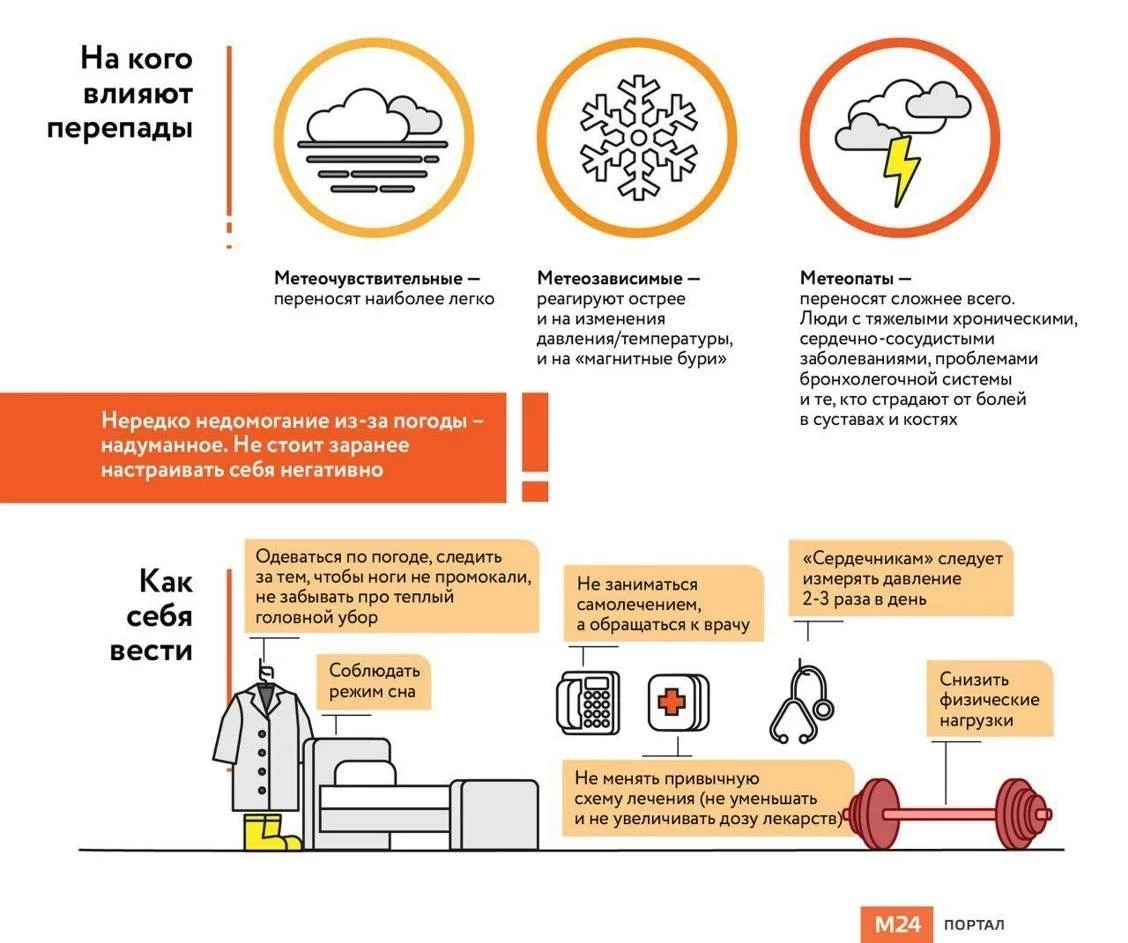 Организмы людей реагируют на изменения в геомагнитном поле не напрямую, а опосредованно. Магнитные бури вызывают изменения в уровне температуры, влажности, атмосферного давления - именно эта нестабильность в условиях окружающей среды становится причиной проблем с самочувствием.