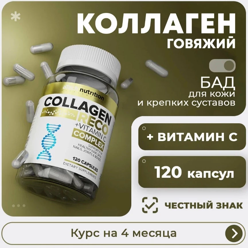 Коллаген aTech nutrition COLLAGEN RECO БАД в капсулах 120 штук