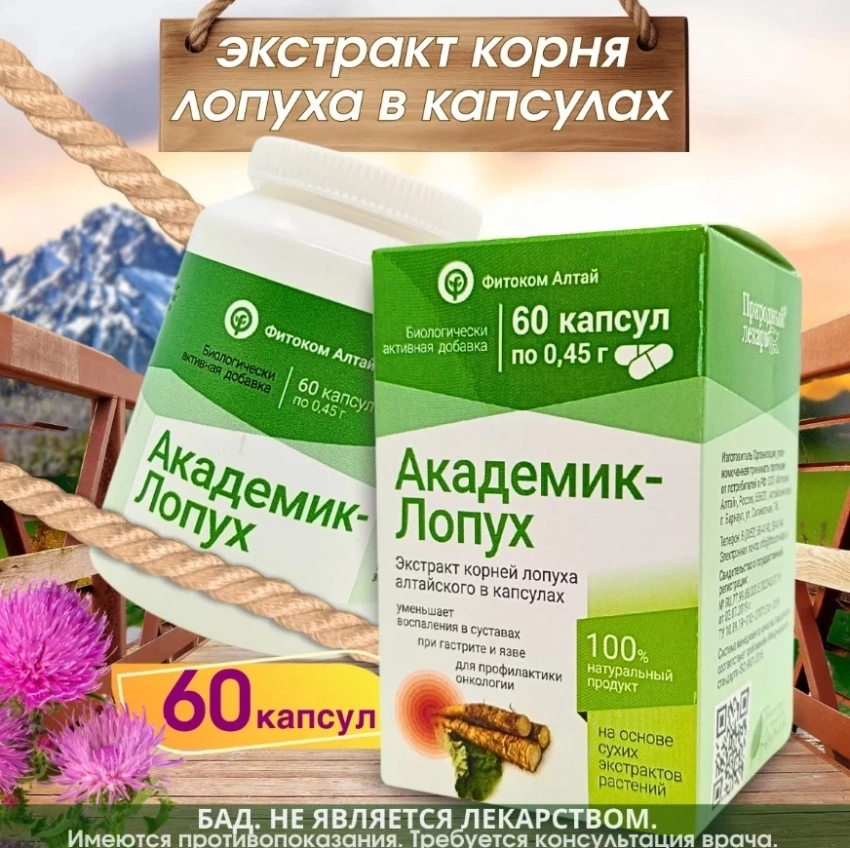 Академик Лопух, экстракт корня лопуха в капсулах, бад, 60 капс, Фитоком Алтай