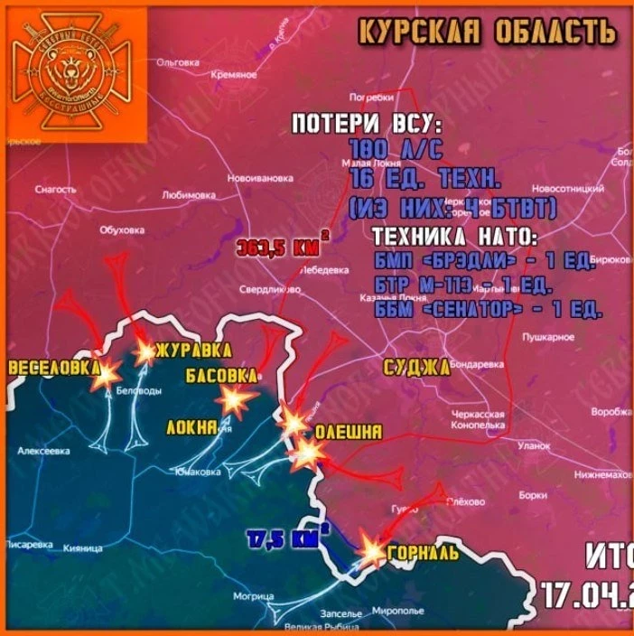 Главные новости » Эксклюзив » В Курской области ожесточённые бои продолжаются у Олешни и Горналя: свежие данные на 18.04.2025