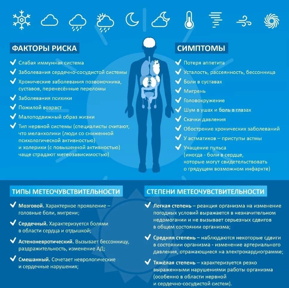 Метеочувствительность: кто ей подвержен и каким образом она проявляется (инфографика)