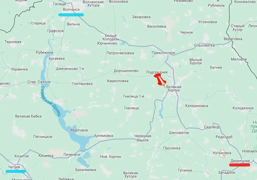 Таким образом наши войска не только увеличивают плацдарм к западу от реки Оскол, но и продвигаются в сторону важнейшего для ВСУ транспортно-логистического узла на северо-востоке Харьковской области – Великого Бурлука.