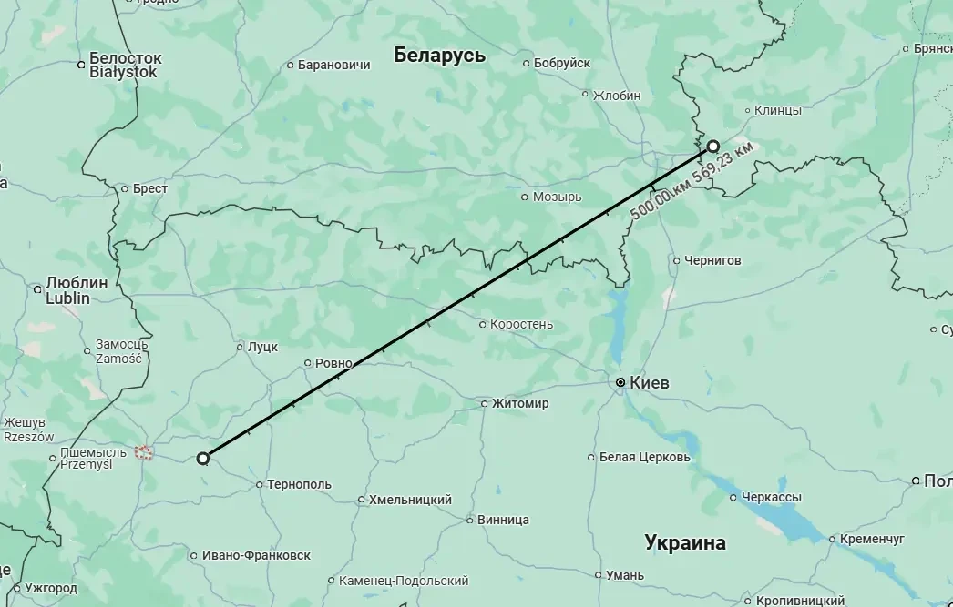 Ближайшая к границам России точка траектории его полёта (если мониторинговые ресурсы корректно эту траекторию отображали), находилась на расстоянии 550 км. Соответственно, ближайшая точка РФ – юго-запад Брянской области.