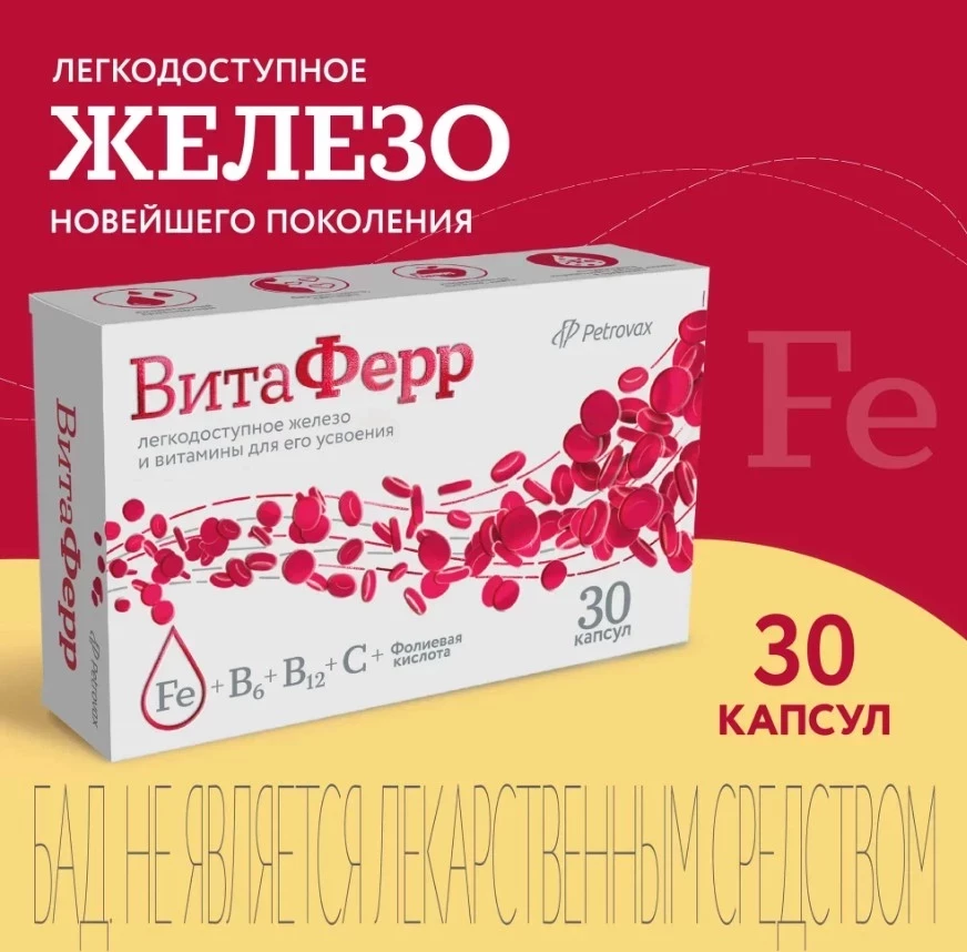 ВитаФерр от Petrovax — это действительно один из лучших представителей категории бады железо топ, созданный для тех, кто хочет восполнить дефицит железа без побочек и с максимальной пользой. В его составе — хелатное железо в форме бисглицината, витамины C, B6, B12 и фолиевая кислота, что делает добавку мощным оружием против усталости, анемии и плохого самочувствия. Формула мягкая для ЖКТ, подходит и женщинам, и мужчинам, включая спортсменов и веганов.