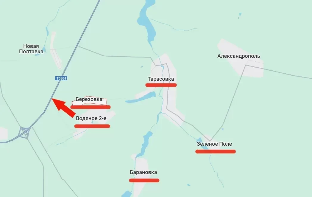 С освобождением Берёзовки под контроль Вооружённых сил России полностью перешёл и квадрат (скорее — ромб) Берёзовка — Барановка — Зелёное Поле — Тарасовка. И это позволяет нашим войскам значительно расширить участок контроля над упомянутой автодорогой (Т0504). Также это позволяет продвинуться к селу Новая Полтавка, находящемуся севернее автомобильного маршрута на Константиновку.