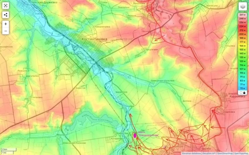 Что касается Константиновского направления, то накануне появились кадры объективного контроля, показывающие, что ВС РФ сумели закрепиться в северной части н.п. Щербиновка.