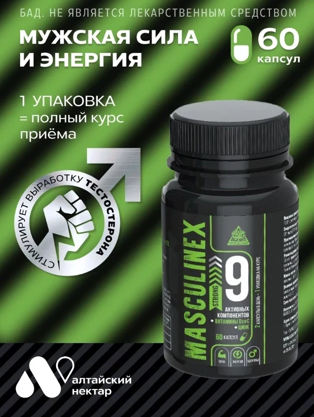 Маскулинекс Стронг от бренда «Алтайский нектар» — это высокоэффективный бустер тестостерона, который идеально подходит для мужчин, стремящихся улучшить свою физическую форму, выносливость и репродуктивное здоровье. Состав, включающий мощные компоненты, такие как панты алтайского марала, эврикома и эпимедиум, стимулирует выработку тестостерона, повышает физическую активность, улучшает потенцию и укрепляет иммунитет. Этот комплекс идеально подходит для поддержания энергии и здоровья в течение всего года.