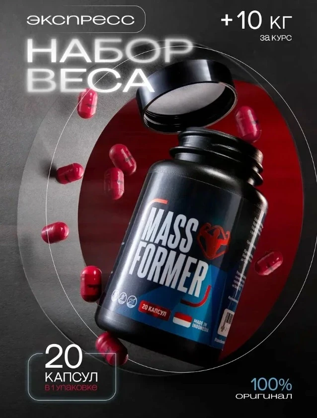 MassFormer — это один из топовых спортивных БАДов, предназначенный для тех, кто хочет эффективно нарастить мышечную массу и улучшить физическую форму. Препарат сочетает в себе мощный комплекс натуральных компонентов, включая женьшень, кордицепс и астрагал, которые стимулируют рост мышц, улучшают циркуляцию крови и увеличивают работоспособность. Курс MassFormer может прибавить до 10 кг массы. Плюс, продукт способствует лучшему восстановлению после тренировок и укреплению иммунитета. Отличная альтернатива порошковым добавкам для удобного использования в любое время и в любом месте.