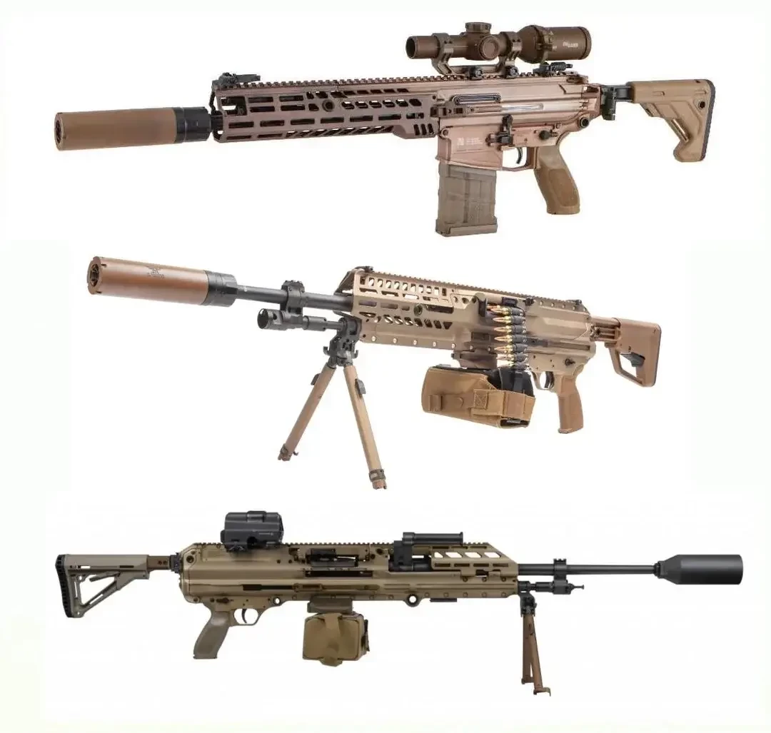 Первый по сути представляет собой раздутый в размерах М240. Второй — это SIG SAUER М250, но также побольше и под более мощный патрон. По-настоящему интересной и самобытной конструкцией является REAPR. Собственно, это аббревиатура для полного названия Recoil Enhanced Automatic Precision Rifle. Как и следует из полного названия, это система с полусвободным затвором с роликовым замедлителем. Немецкая G3 под мощный патрон. В общем, по большому счёту, это всё, что известно. Оружие всё ещё тестируется, многие характеристики не раскрываются, а на сайте самого производителя только 100 раз повторяется «уникальный».