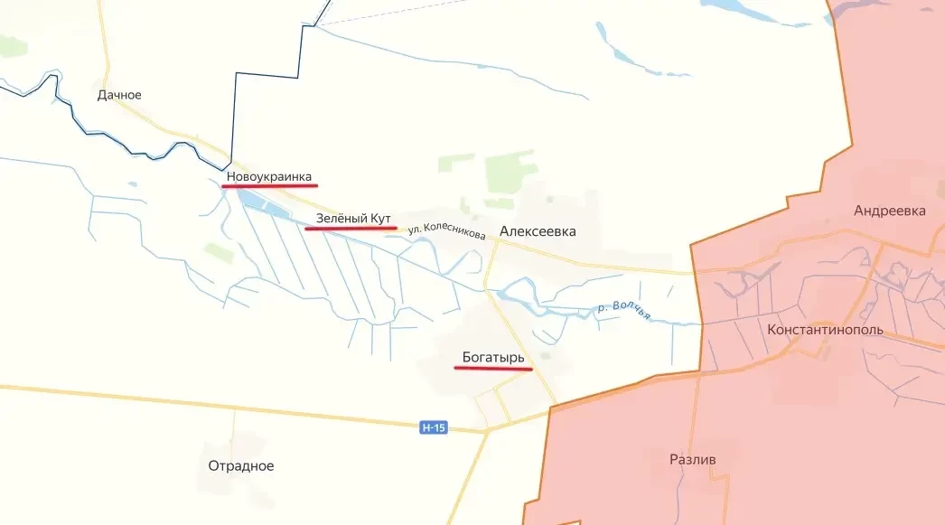 Двумя днями ранее поступило информация, что к северо-западу от села российские военные уничтожили два моста через реку Волчья. Это произошло недалеко от Зеленого Кута и Новоукраинки. Целью таких действий является нарушение логистики украинских подразделений, держащих оборону Богатыря.