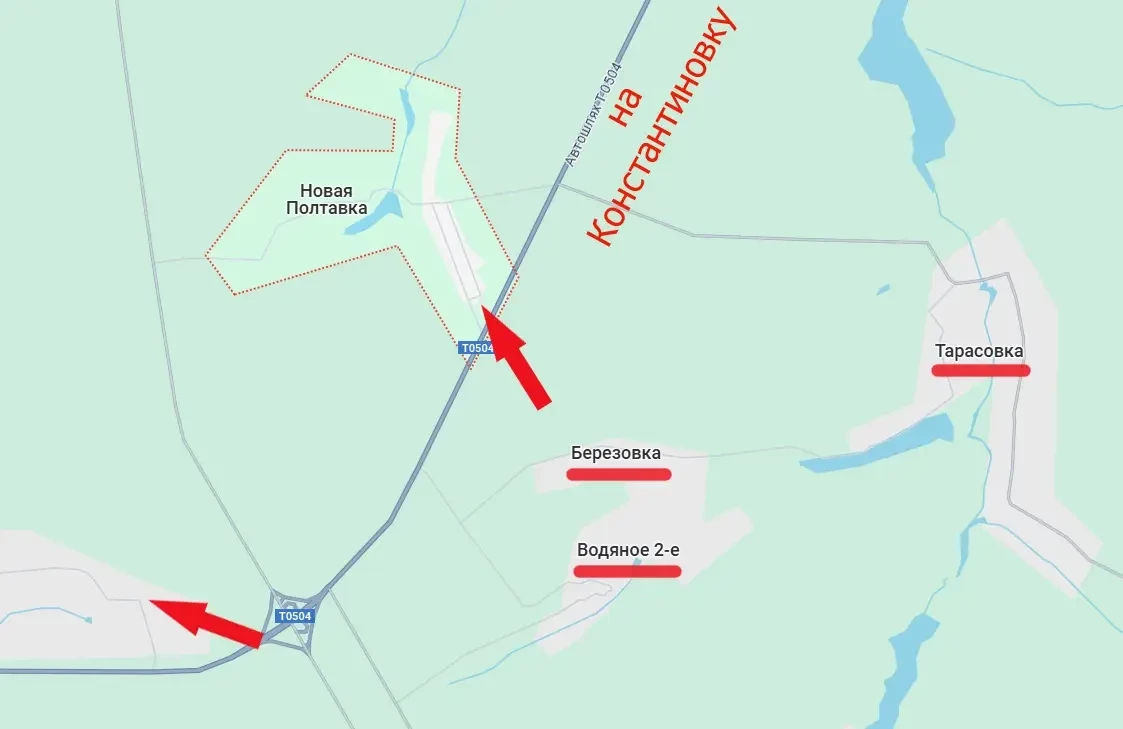 При этом сам выход к Новой Полтавке наших войск свидетельствует о том, что расширился участок контроля указанной выше автодороги Т0504, а значит, оперативно перебрасывать силы между Покровском и Константиновкой (по кратчайшему маршруту) у ВСУ возможности уже нет.